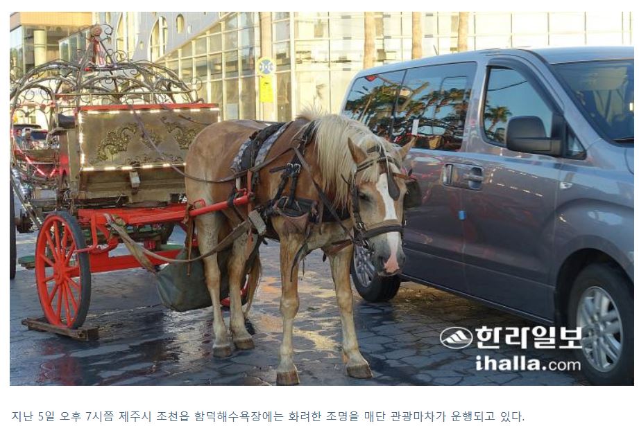 [한라일보] 수년 전부터 반복 돼온 제주도내 해수욕장 ‘꽃마차(관광마차)’를 둘러싼 동물학대 논란이 다시 제기됐다. 흥미로운 관광상품이라는 시각과 동물학대에 교통체증을 유발한다는 비판이 공존한다.