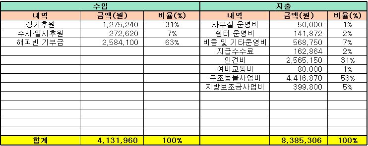 동물권단체 하이는 기부금대상 공익단체로서 매년 공익단체 결산보고서를 행정안전부에 제출하며